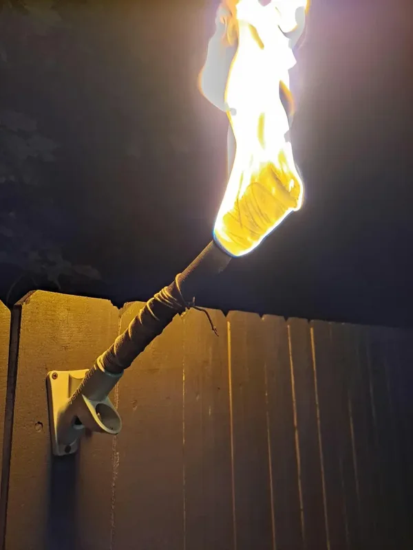 Make sure to light torch at an angle and let sit for a moment, beware of any strings when burning, and please be safe! Best if head is soaked in tiki torch solution for a short duration before lighting and wear protection. We are not responsible for any damage to self, property, or items if lit. Be safe and follow local ordinance.