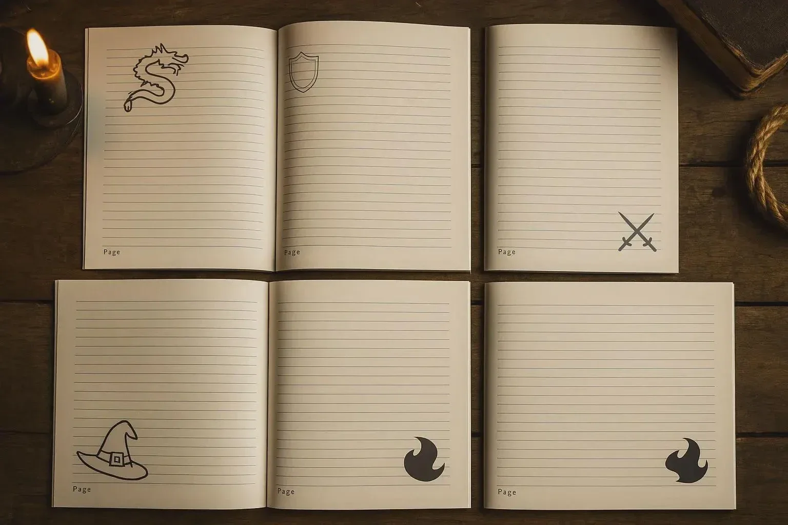 Step into a world of parchment, quills, and imagination with the Hagglestone Journal Collection. Specially crafted and designed with care, these 5 unique notebooks bring a medieval fantasy aesthetic to your everyday writing. Each notebook is more than blank pages — it’s an invitation to adventure, reflection, and creativity.